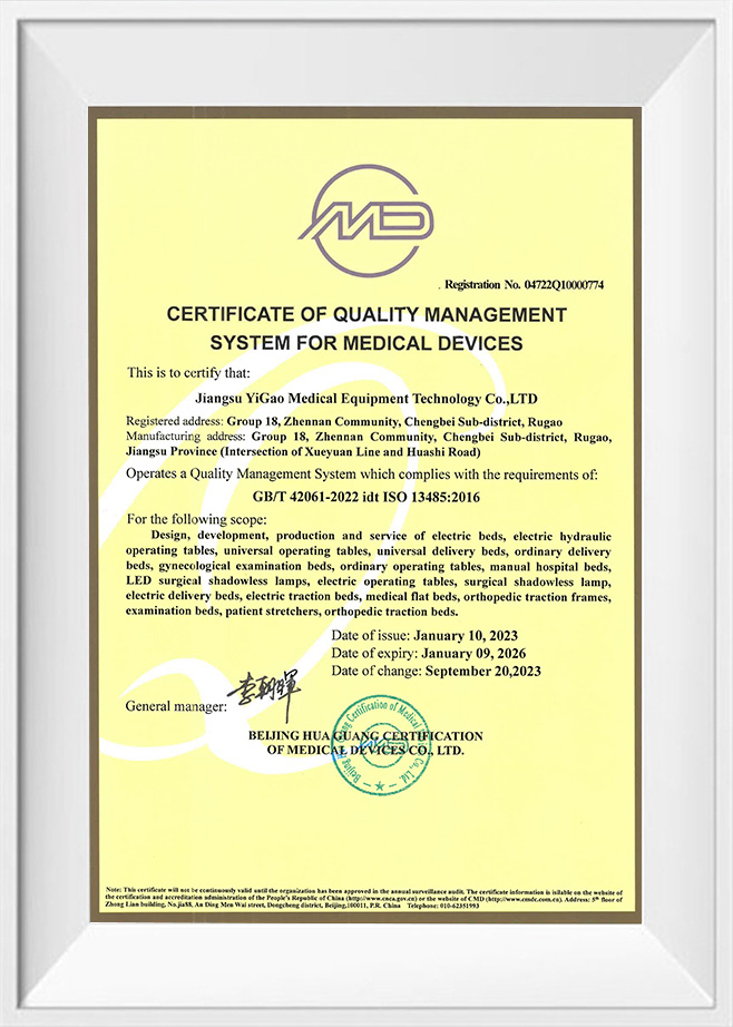 Certificato del sistema di gestione della qualità per i dispositivi medici