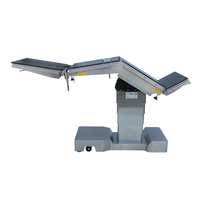 Questo prodotto è adatto per l'esecuzione di interventi chirurgici alla testa, al collo, al torace, alla cavità addominale, al perineo e agli arti nelle sale operatorie ospedaliere, nonché in ostetricia e ginecologia, oftalmologia, otorinolaringoiatria, ortopedia e altri interventi chirurgici. Il sollevamento, l'inclinazione in avanti e all'indietro, l'inclinazione a sinistra e a destra, la piegatura del tabellone e il movimento longitudinale del piano del tavolo sono ottenuti da un sistema idraulico elettrico, flessibile e semplice da utilizzare. Il pannello del tavolo è realizzato in pannello sintetico ad alta resistenza e può essere utilizzato insieme ai bracci a forma di C.