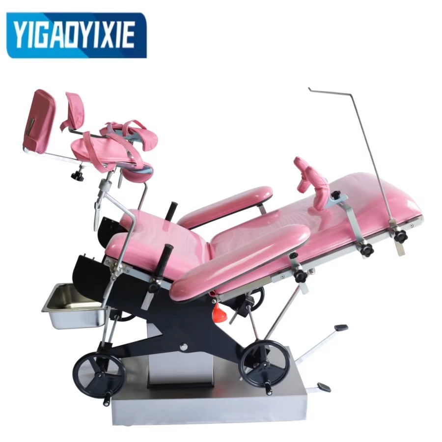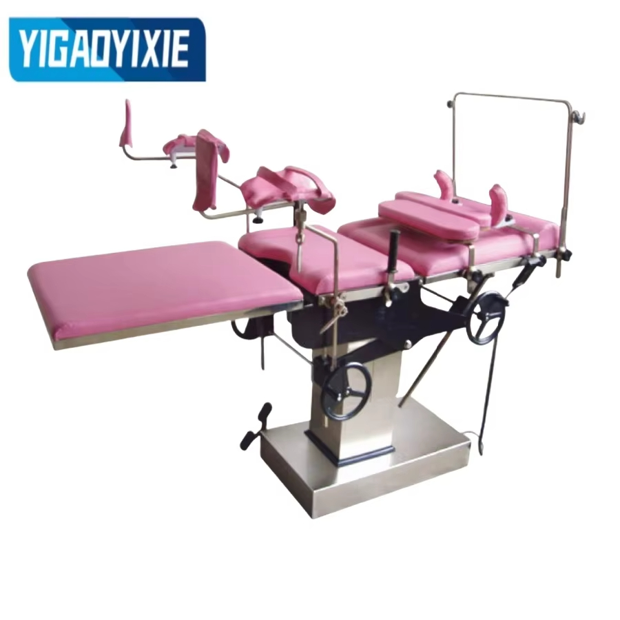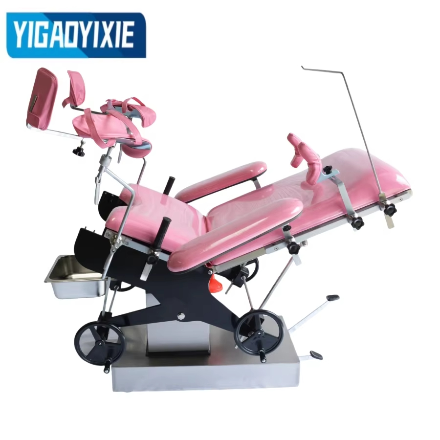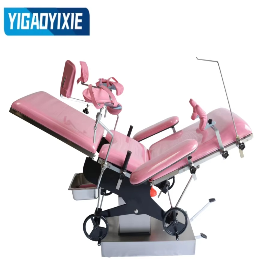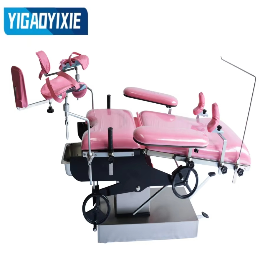 3. Le regolazioni, come l'inclinazione in avanti e all'indietro, il ripiegamento su e giù del tabellone, vengono eseguite agitando i volantini, l'ingranaggio a vite senza fine, la turbina e la trasmissione a cremagliera su entrambi i lati del letto di parto.